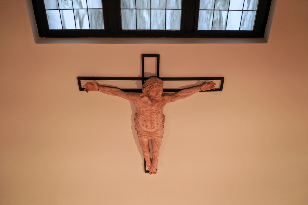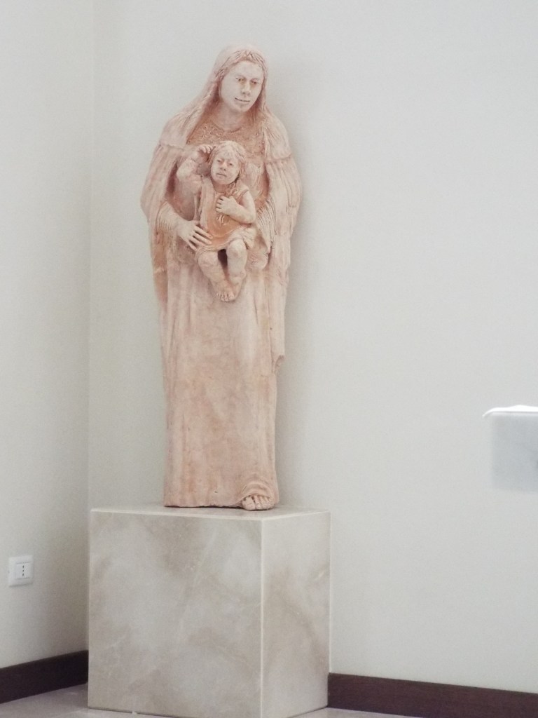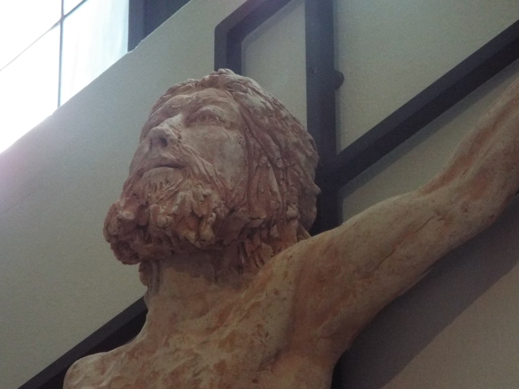 Opera dello stesso artista il crocifisso, sofferente ma con lo sguardo verso l’alto, già proiettato alla Risurrezione, e la Vergine che offre il bambino, come il pane spezzato per noi, nell’Eucarestia.