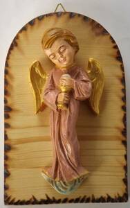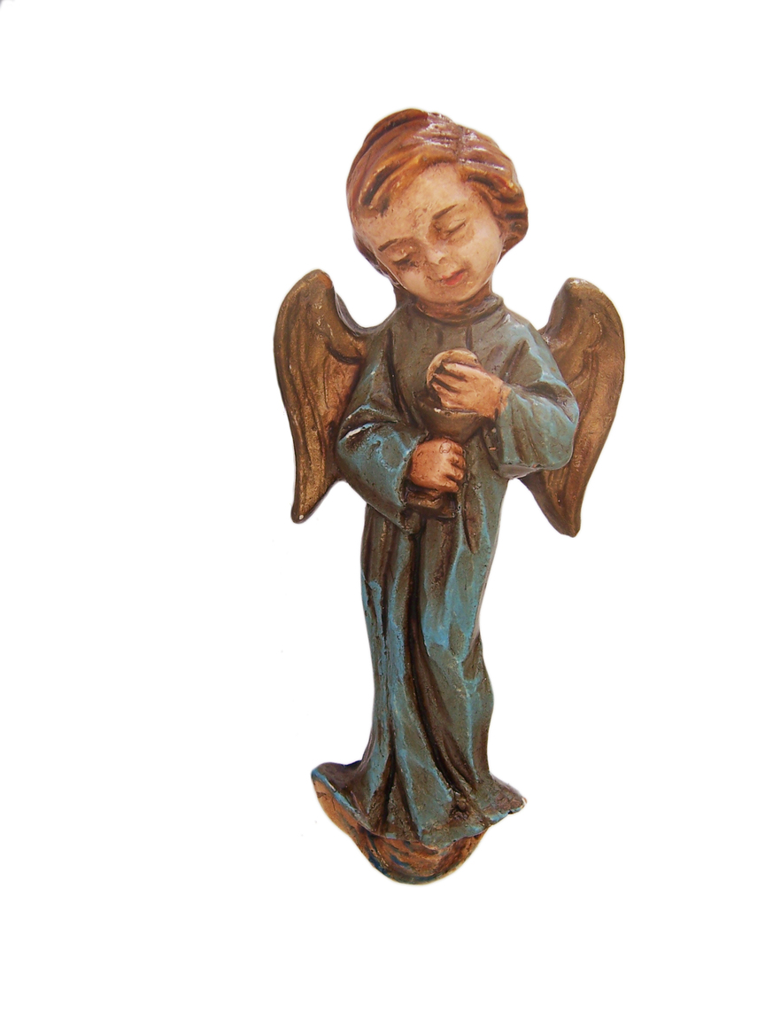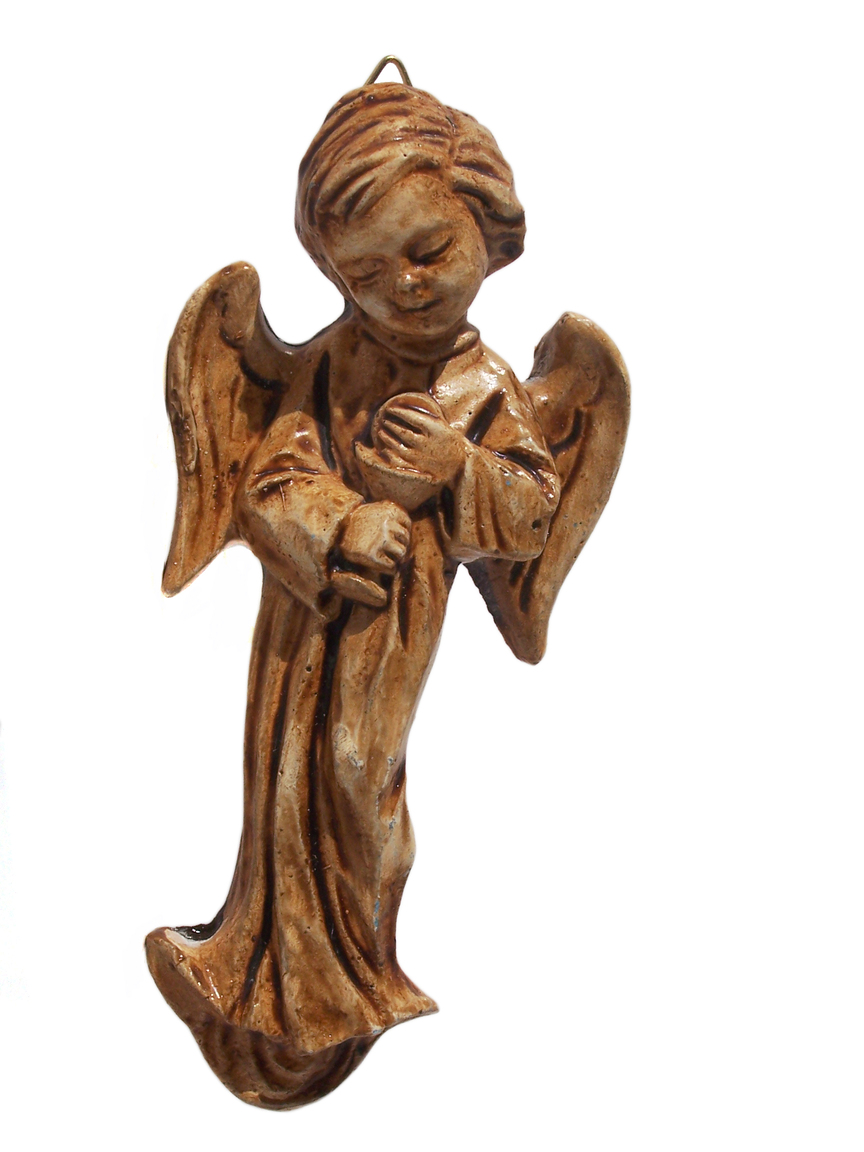Angelo custode nell’atto di stringere a sé il calice e l’ostia consacrata, Corpo di Cristo. Simbolo di protezione. Articolo realizzato a mano, con stampo di gesso.
