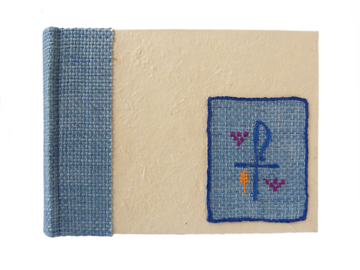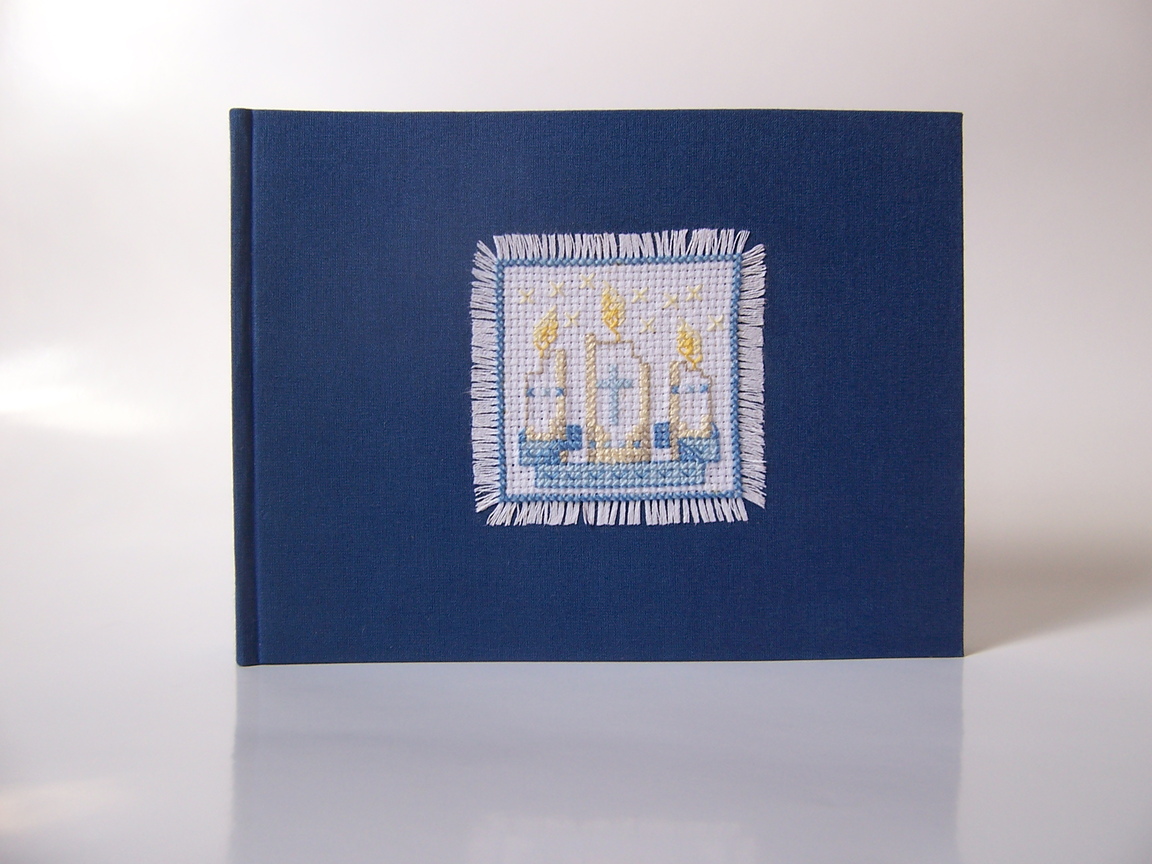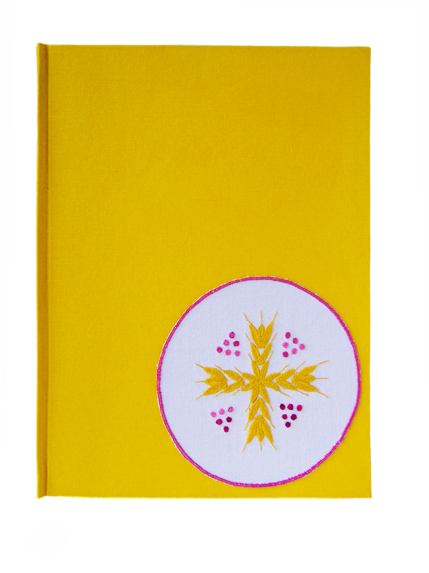 Album fotografico con applicazioni di ricami a soggetto eucaristico o concordabili su richiesta. Articolo realizzato a mano.