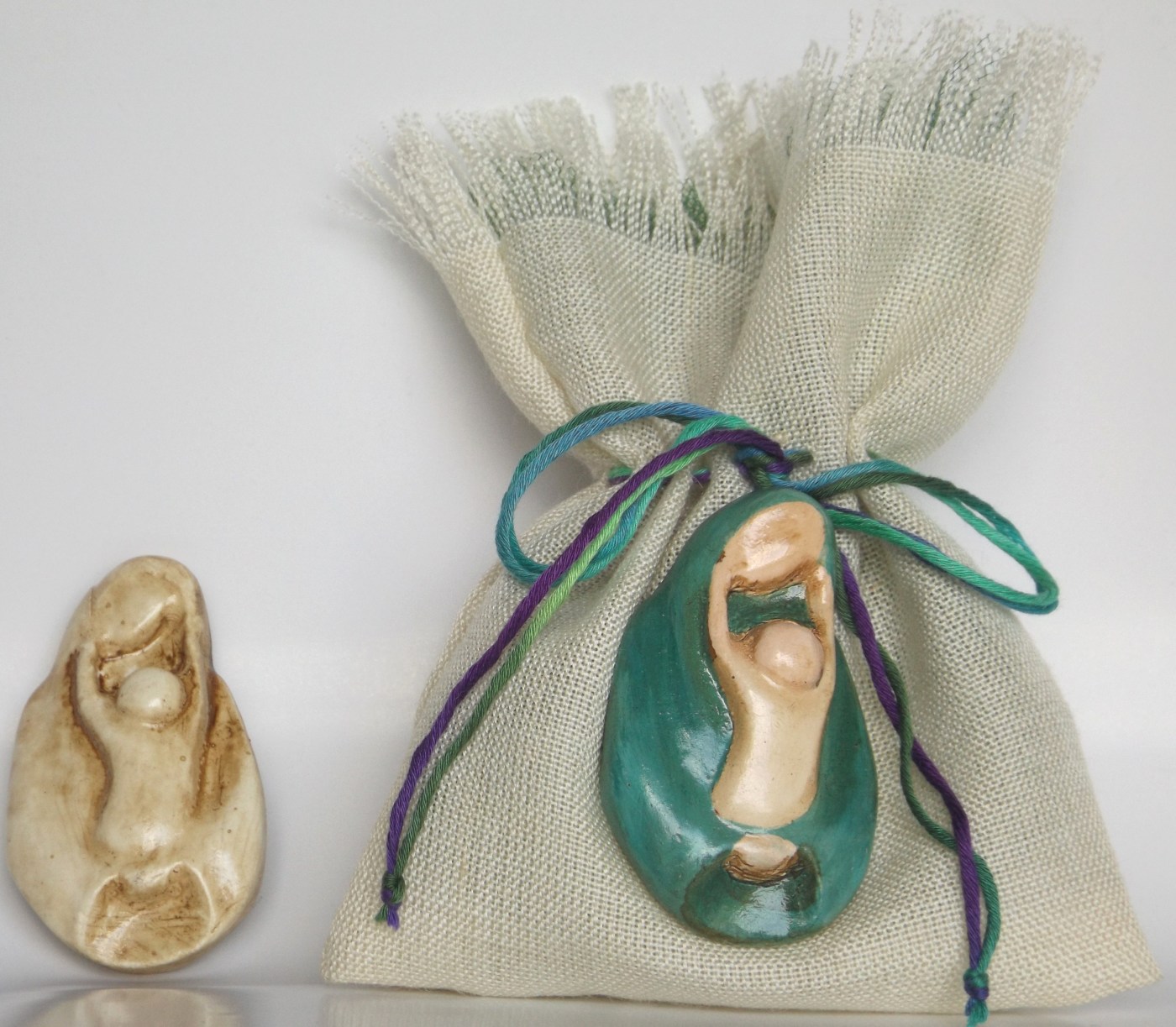 SACCHETTINO CON MARIA E GESU’ BAMBINO IN GESSO