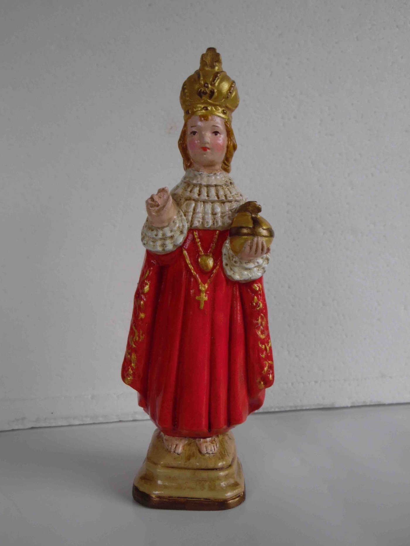 Statua di Gesù Bambino di Praga, in gesso, colorata a mano.