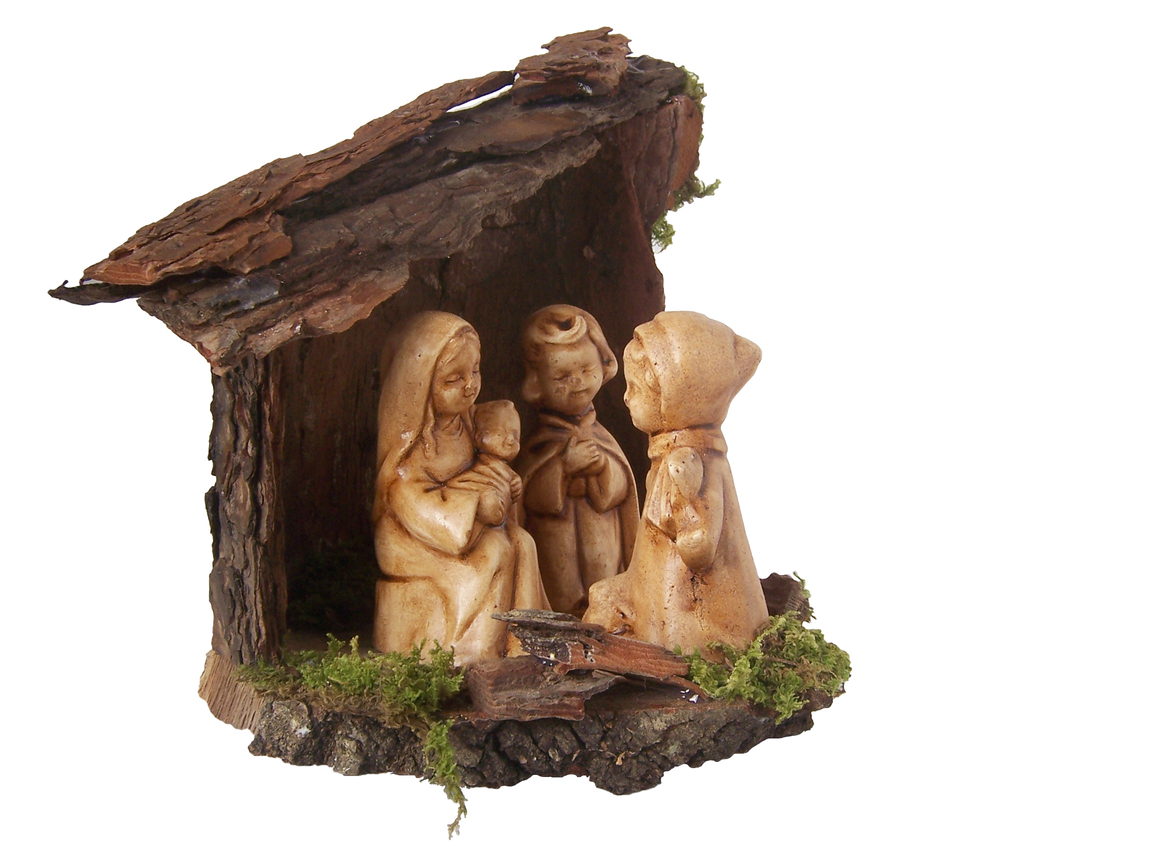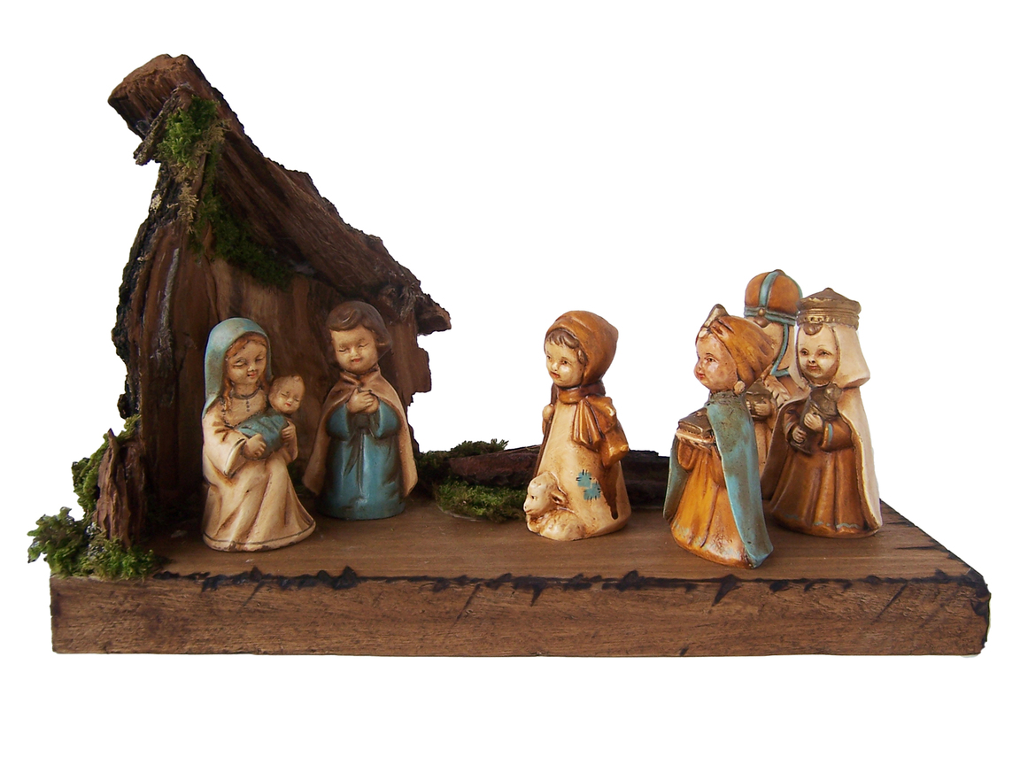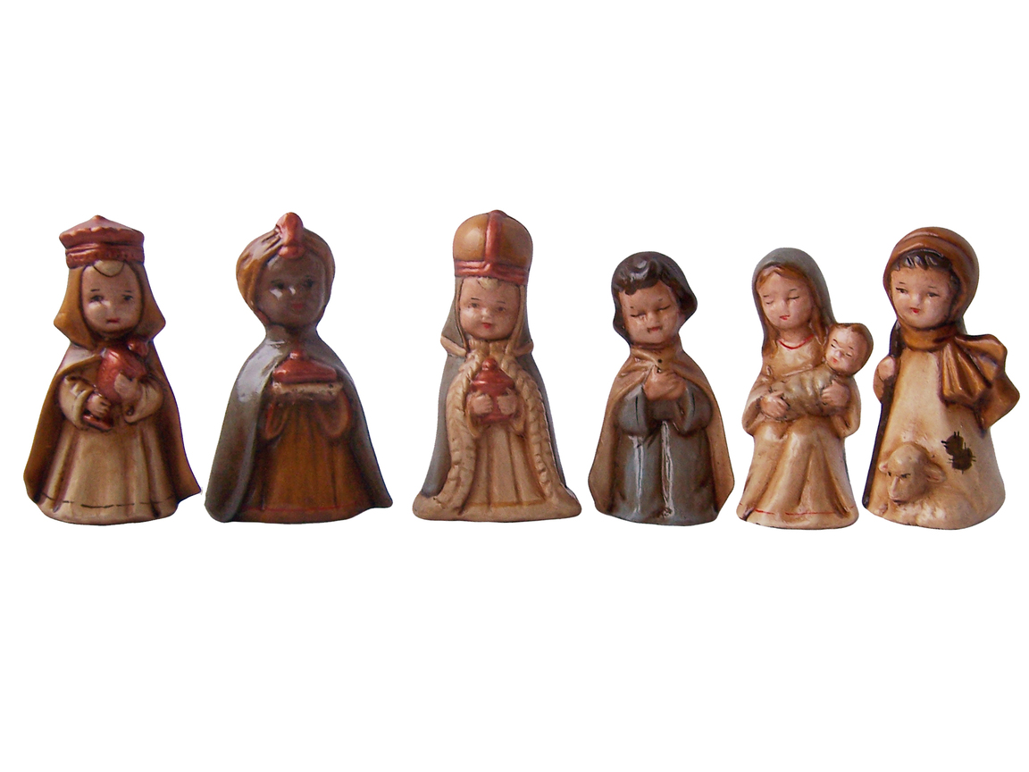 S. Giuseppe, Maria che porta sulle ginocchio il piccolo Gesù, una giovane pastorella, i tre re magi. Articolo realizzato a mano, con stampo, di gesso.
