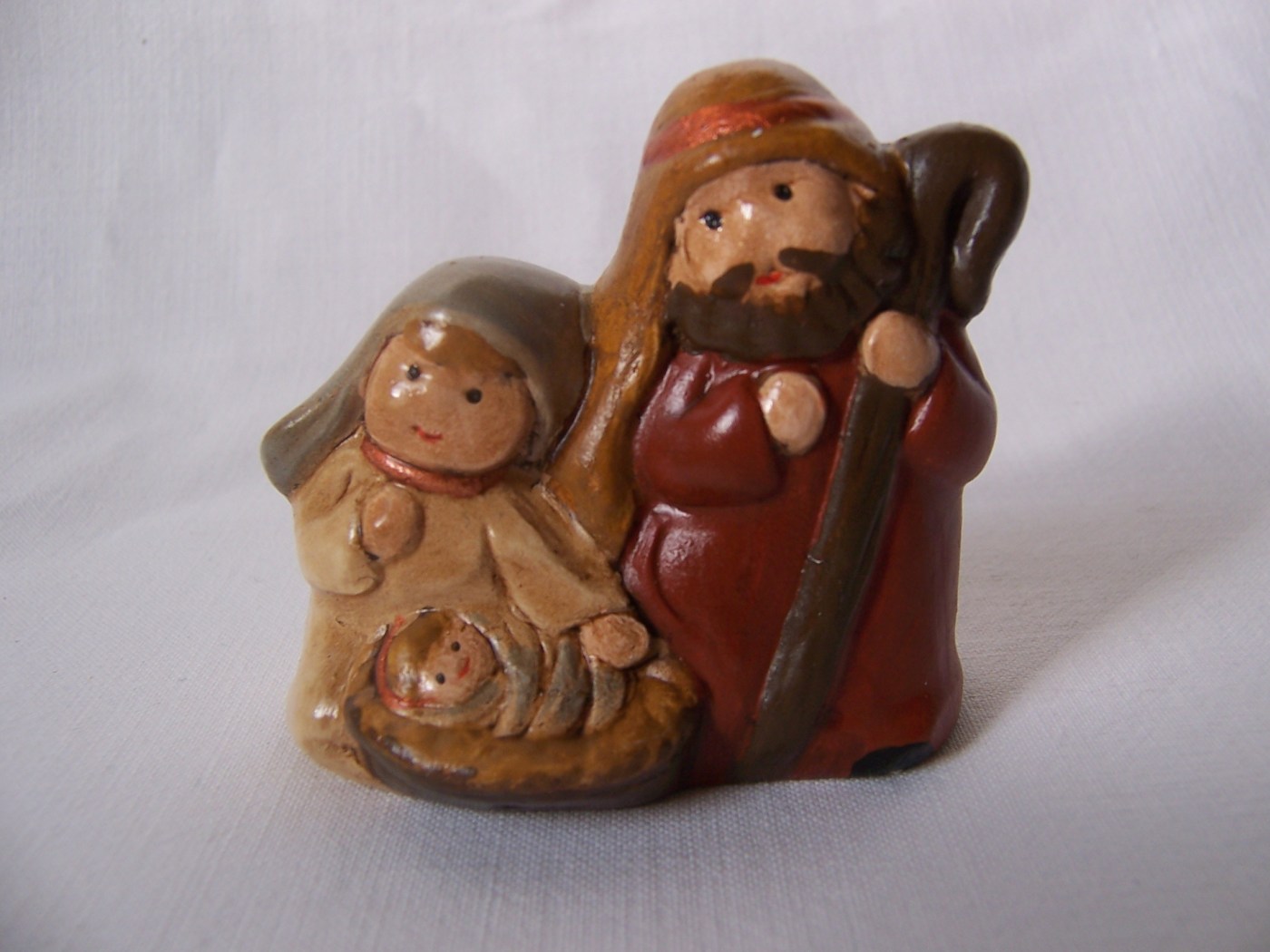 Presepe costituito da un elemento unico in gesso, raffigurante Gesù bambino nella mangiatoia, Maria che lo circonda e al suo fianco San Giuseppe in stile patriarcale. Possono essere aggiunti una pecorella e la stella.