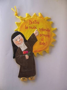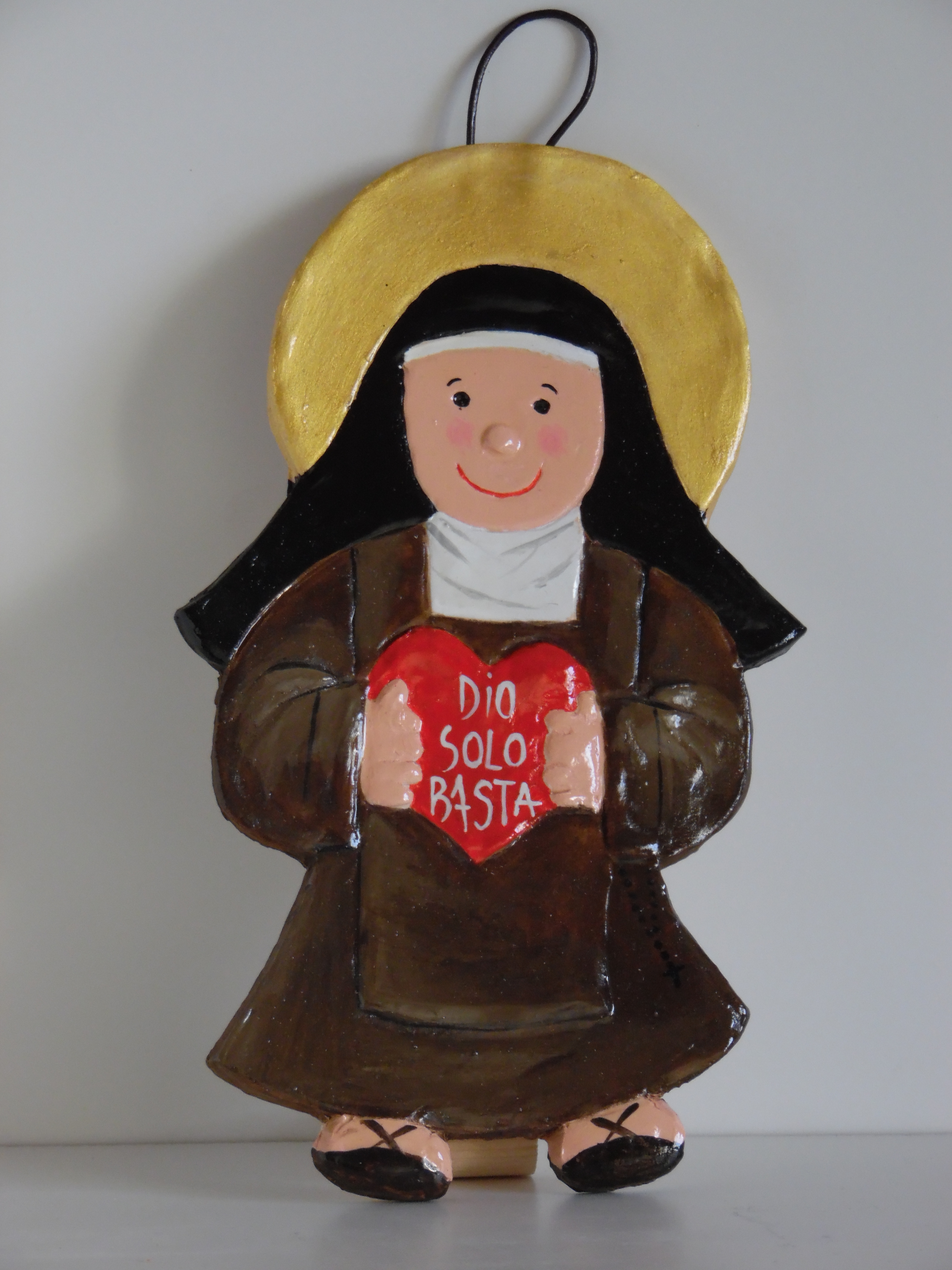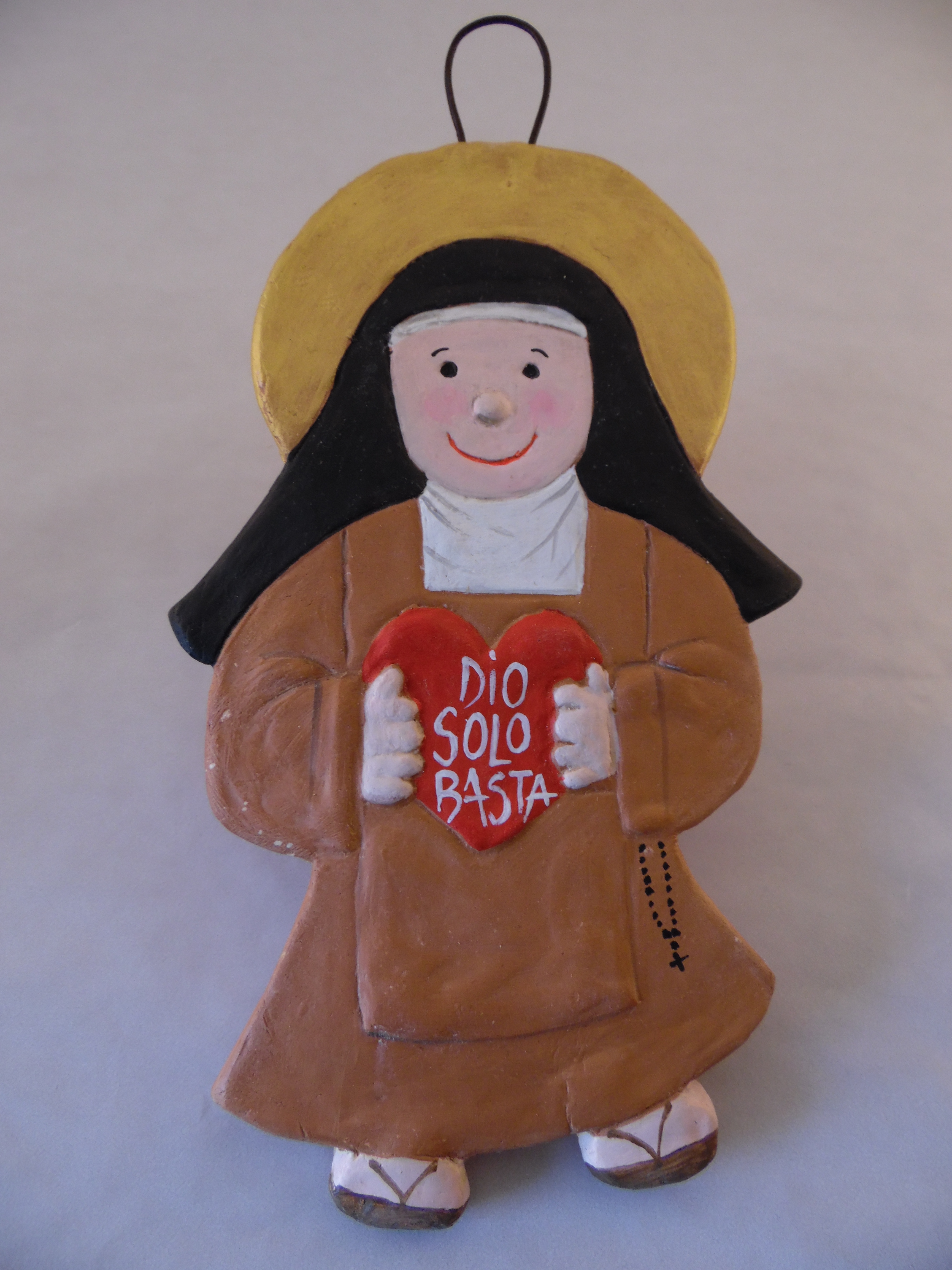 Un simpatico disegno in terracotta di Santa Teresa di Gesù Bambino, Santa Teresa di Gesù, San Giovanni della Croce, ideale per bambini.