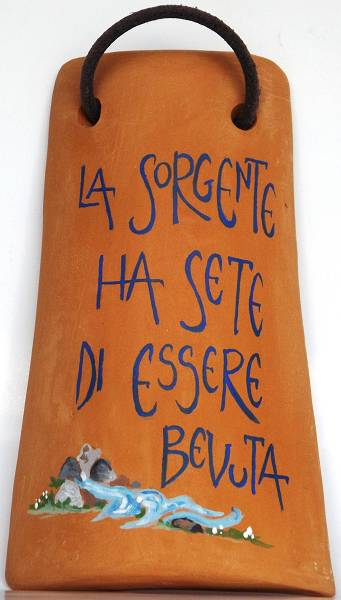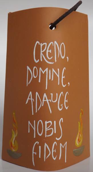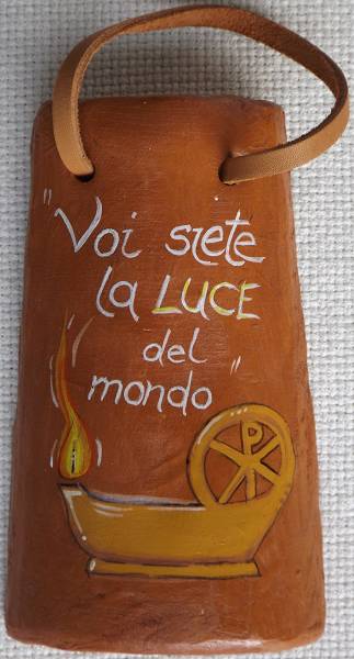 Descrizione: tegole in terracotta sulle quali sono dipinte frasi del Vangelo o di santi e simboli eucaristici. Personalizzabili, su richiesta.