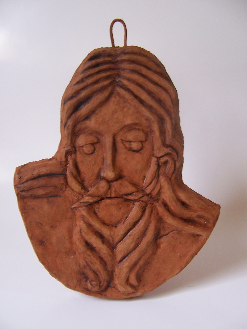 Descrizione: riproduzione in terracotta del celebre Volto Santo di Lucca, Gesù glorioso, dopo la Risurrezione.